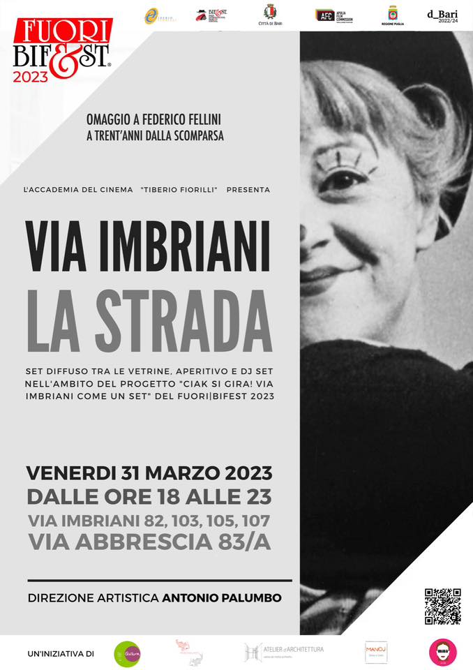 BARI - Venerdì 31 Marzo 2023, l'ultimo tratto di via Imbriani (tra via Abbrescia e Piazza Diaz) si trasformerà in un set cinematografico, mostrandoci quello che accade durante la lavorazione di un film. Gli studenti dell’Accademia del Cinema “Tiberio Fiorilli”, in collaborazione con la scenografa Angela Varvara, docente dell’Accademia di Belle Arti di Bari e il direttore della Fotografia Dario Di Mella, metteranno in scena alcune sequenze tratte dal film “La Strada”.